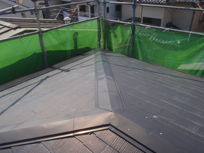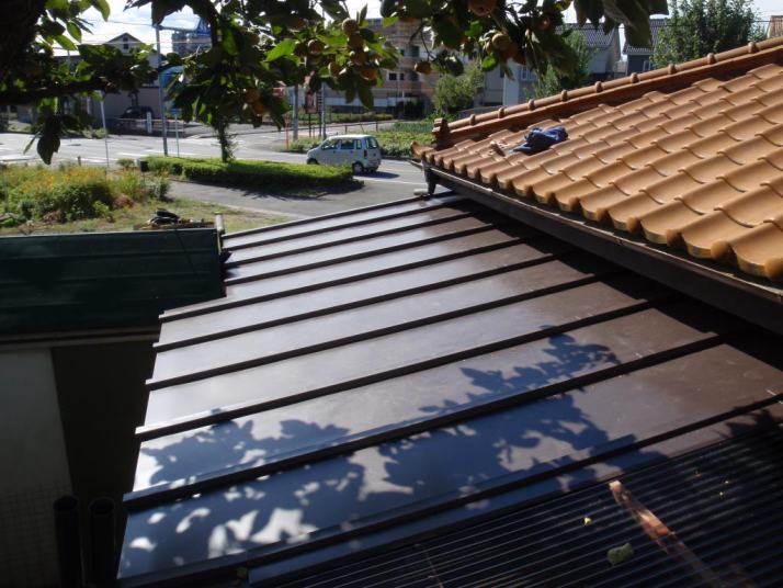 この事例は、過度な塗装により毛細管現象を起こし、下地の腐食が生じたため、野路板の交換を行い瓦棒葺きを原状回復した事案です。
