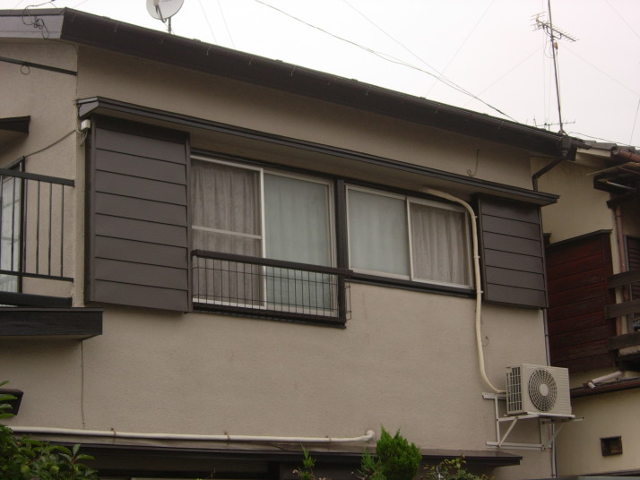 この事例は木質の雨戸が経年劣化で傷んできた戸箱の意匠を整えるために板金加工を行った事例です。