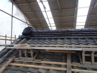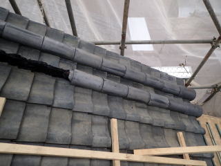 土葺きの修復は年度を使用することで瓦のねじれを調整しながら葺き厚をそろえる事が出来ます。