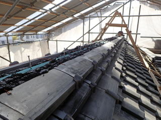 この現場では「通糸棟」と言われる熨斗瓦に隙間を空けて積み上げる工法を行わせていただきました。